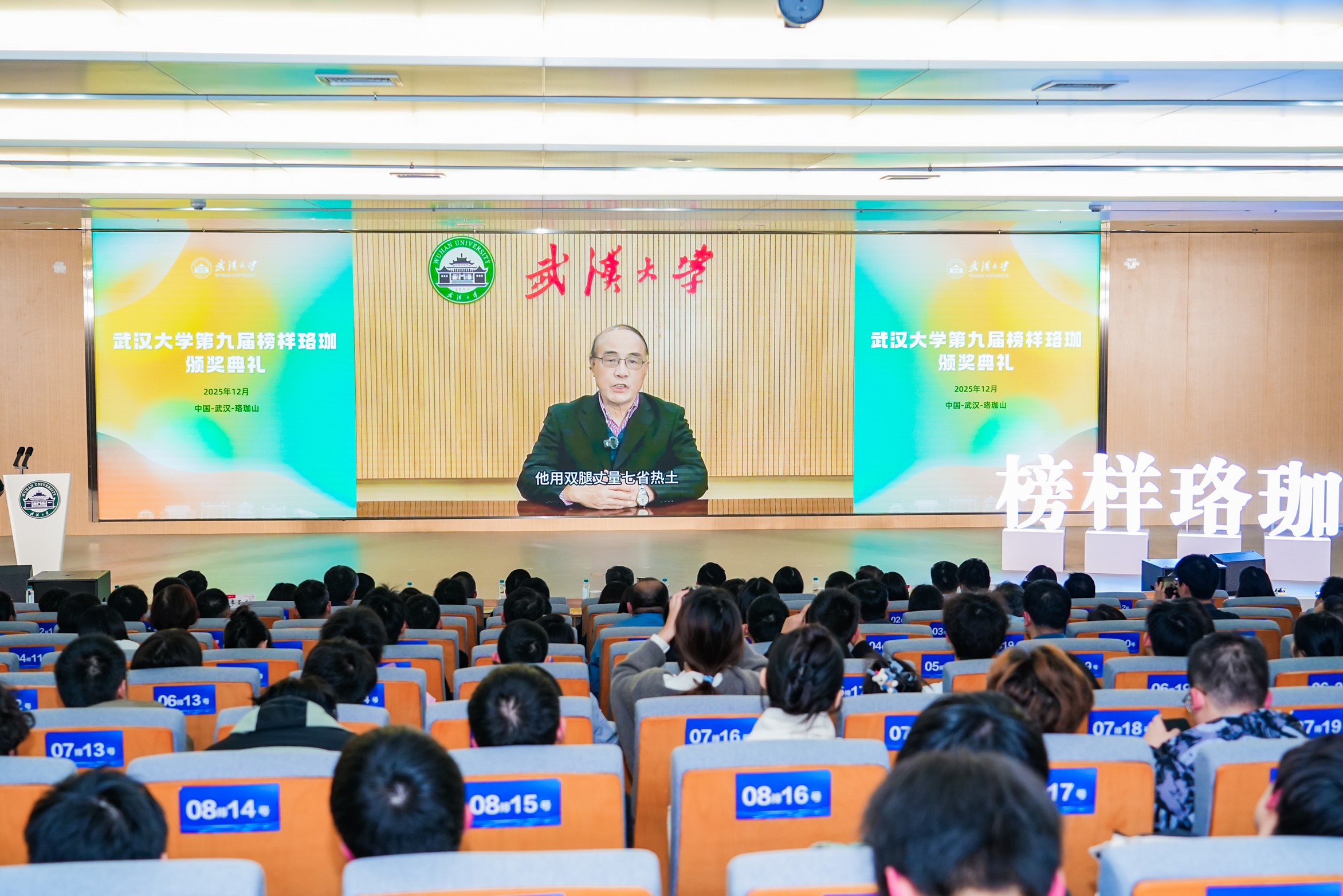 会上,校长张平文指出,“榜样珞珈”不仅记录着同学们的成长足迹,更是学校落实立德树人根本任务、构建高质量人才培养体系的体现。面向数智时代,他寄语同学们要推动学习方式从被动接受转向主动建构,培养跨学科解决问题和实践应用能力;要强化价值引领,涵养家国情怀与利他主义,在服务国家重大战略中实现人生价值。学校将持续凝聚育人合力,推动跨部门高效联动,加强专业教师、班级导师、学工等队伍协同,营造崇尚奉献、务实进取的育人生态。